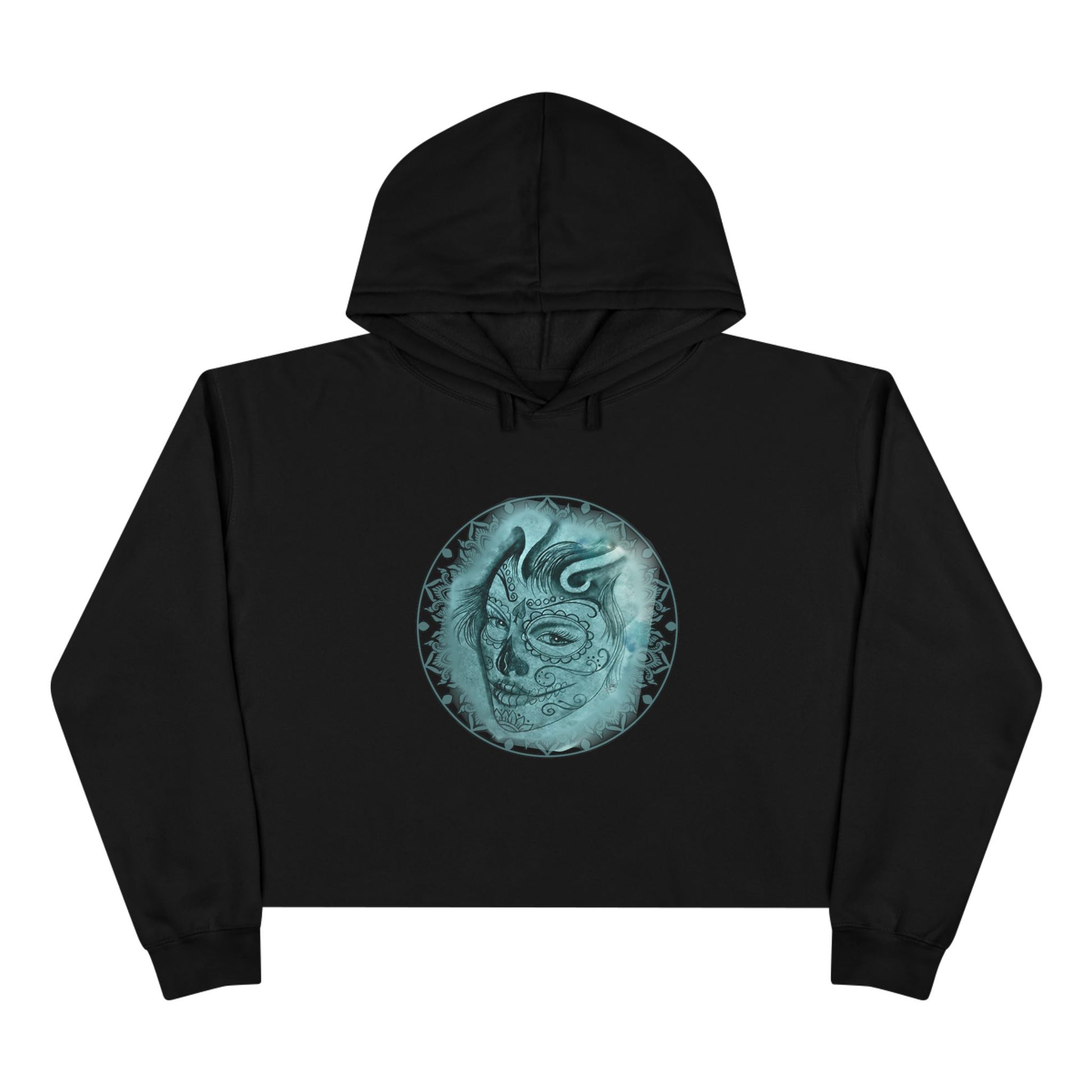 Beautiful Face Tattoo Artwork - Crop Hoodie Sweatshirt Black or White