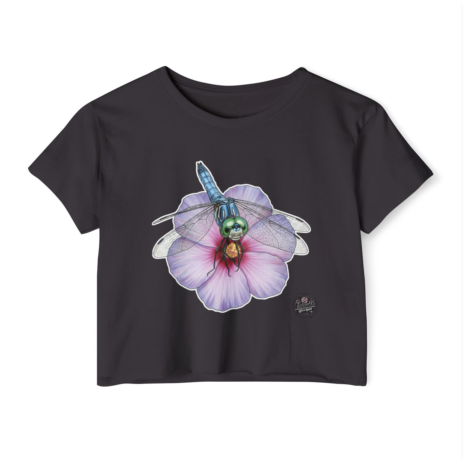 Dragonfly Hibiscus - Black Cropped TShirt (XS-2XL)