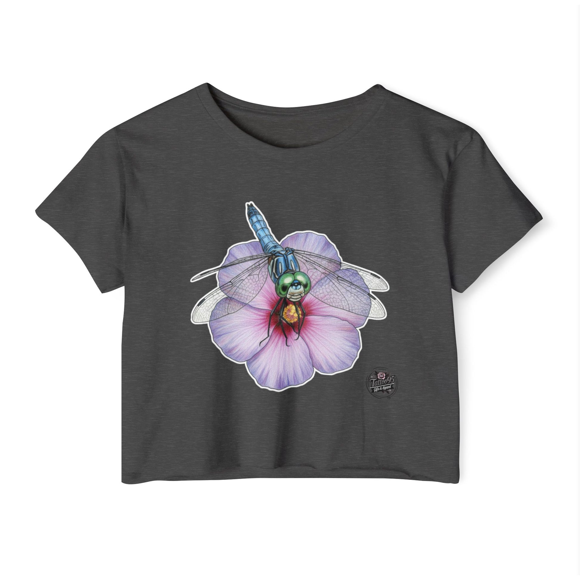 Dragonfly Hibiscus - Charcoal Cropped TShirt (XS-2XL)