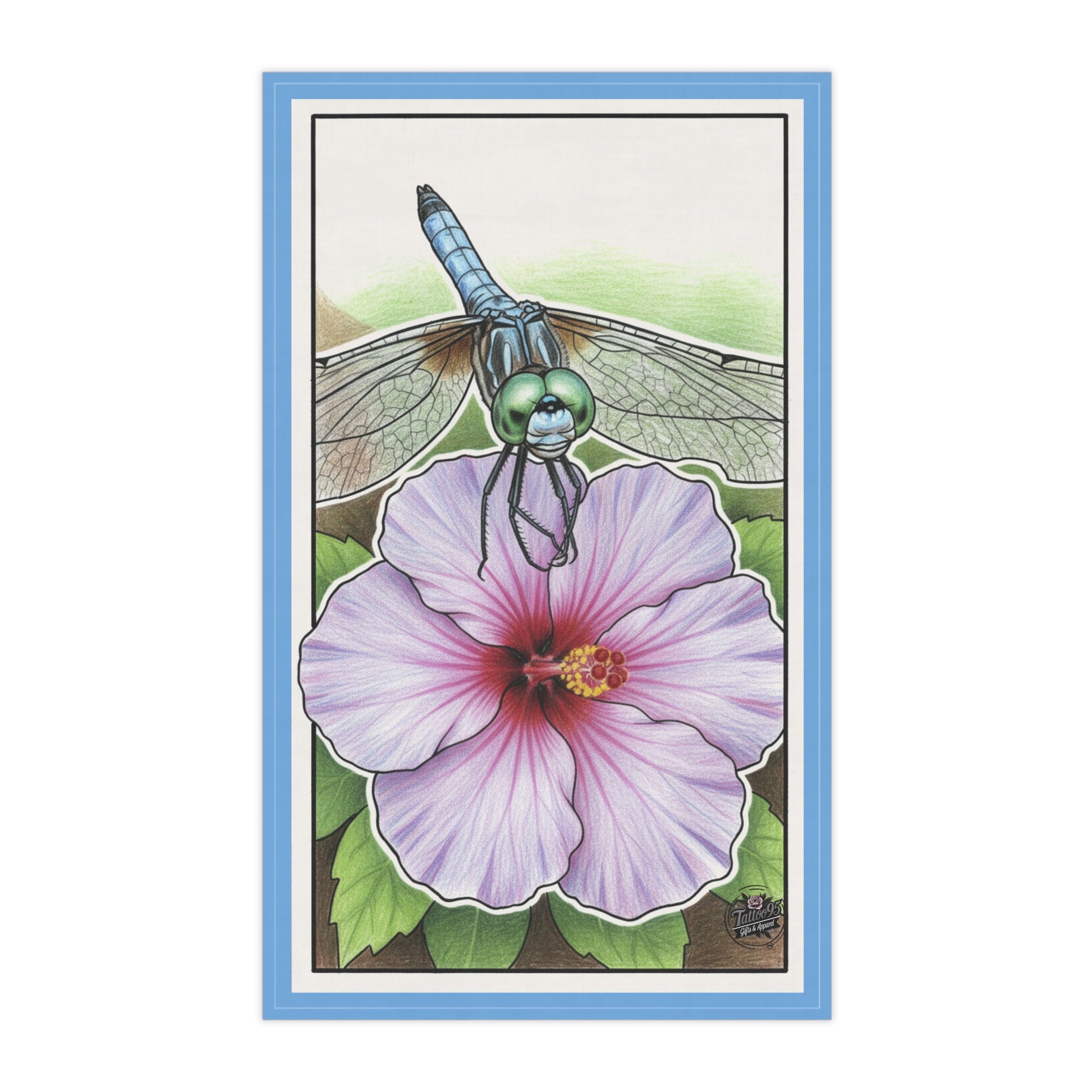 Dragonfly Hibiscus - Tea Towel - Sky Blue Kitchen Towel