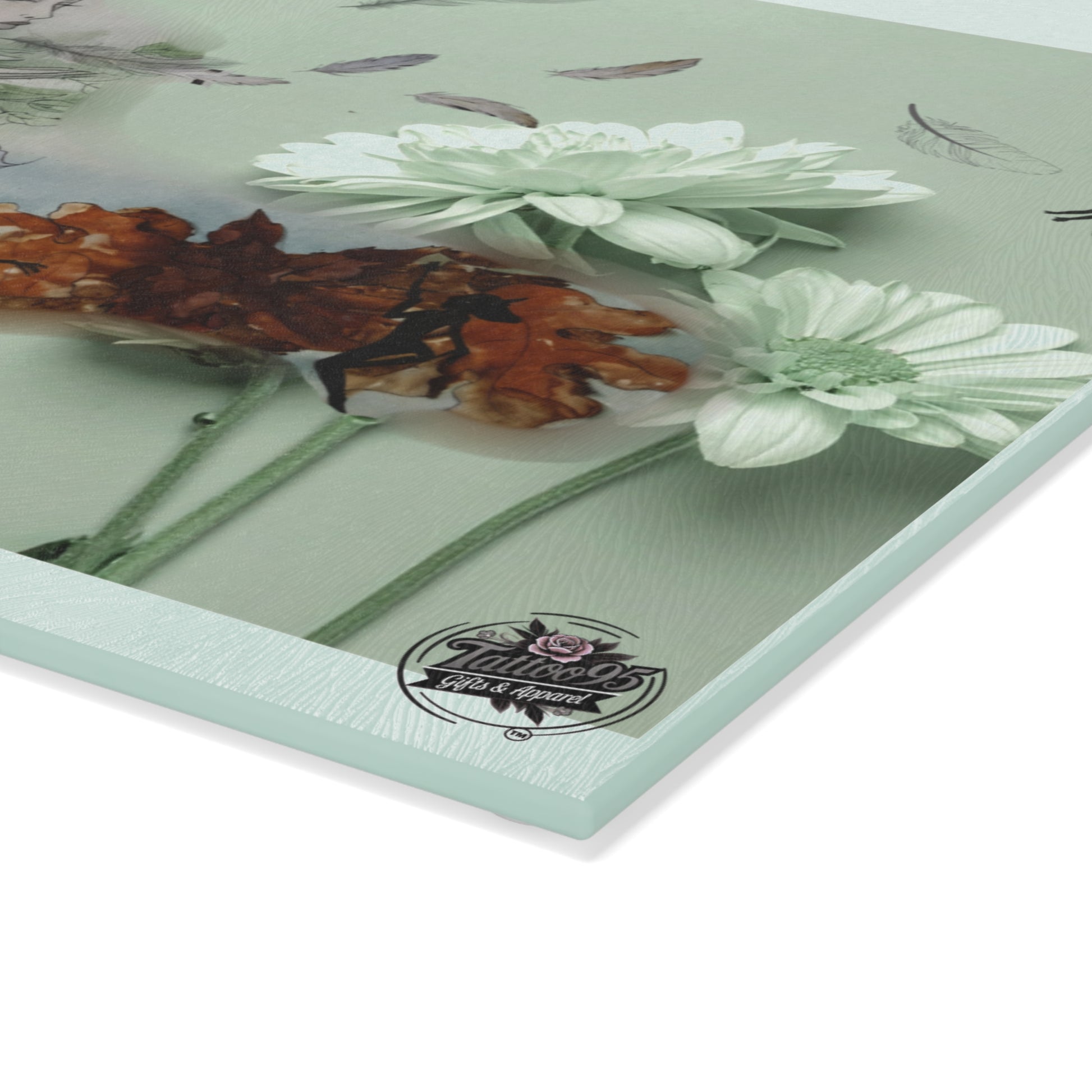 Bright blooms and a tiny wishful fairy meet practical kitchen performance. This tempered glass cutting board brings cheerful red-orange floral artwork and delicate ornamental linework to your counter. The textured, stain-resistant surface keeps prints vivid while you chop, slice, and serve. Four rubber feet hold the board steady during prep and casual entertaining. Choose a compact 8×11 size for tight kitchens or the larger 11×15 for more working space. Hand wash and dry to keep the colors lively for years of everyday use.