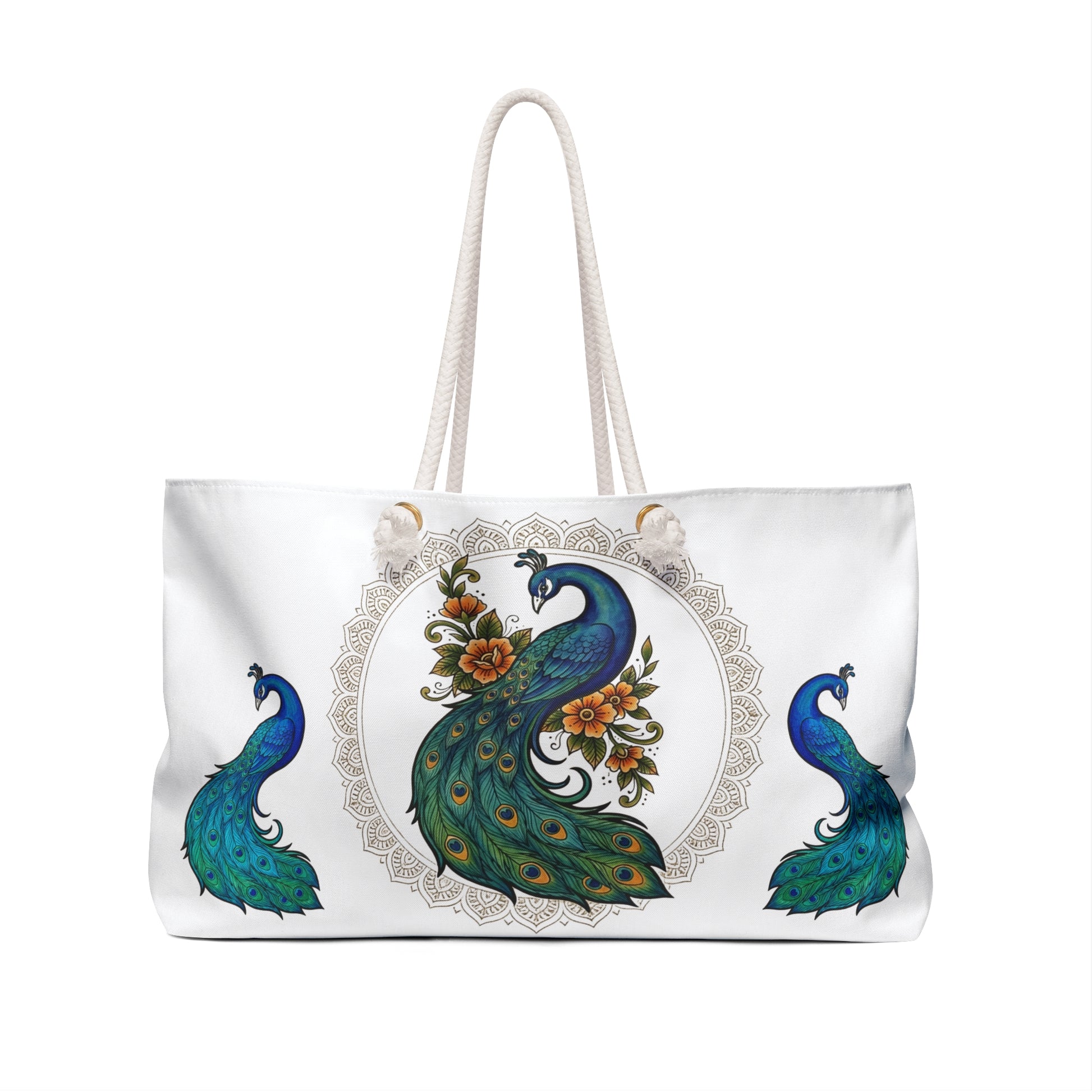 Floral Peacocks - Weekender Bag — Spacious Travel Tote with Elegant Bird Mandala Design