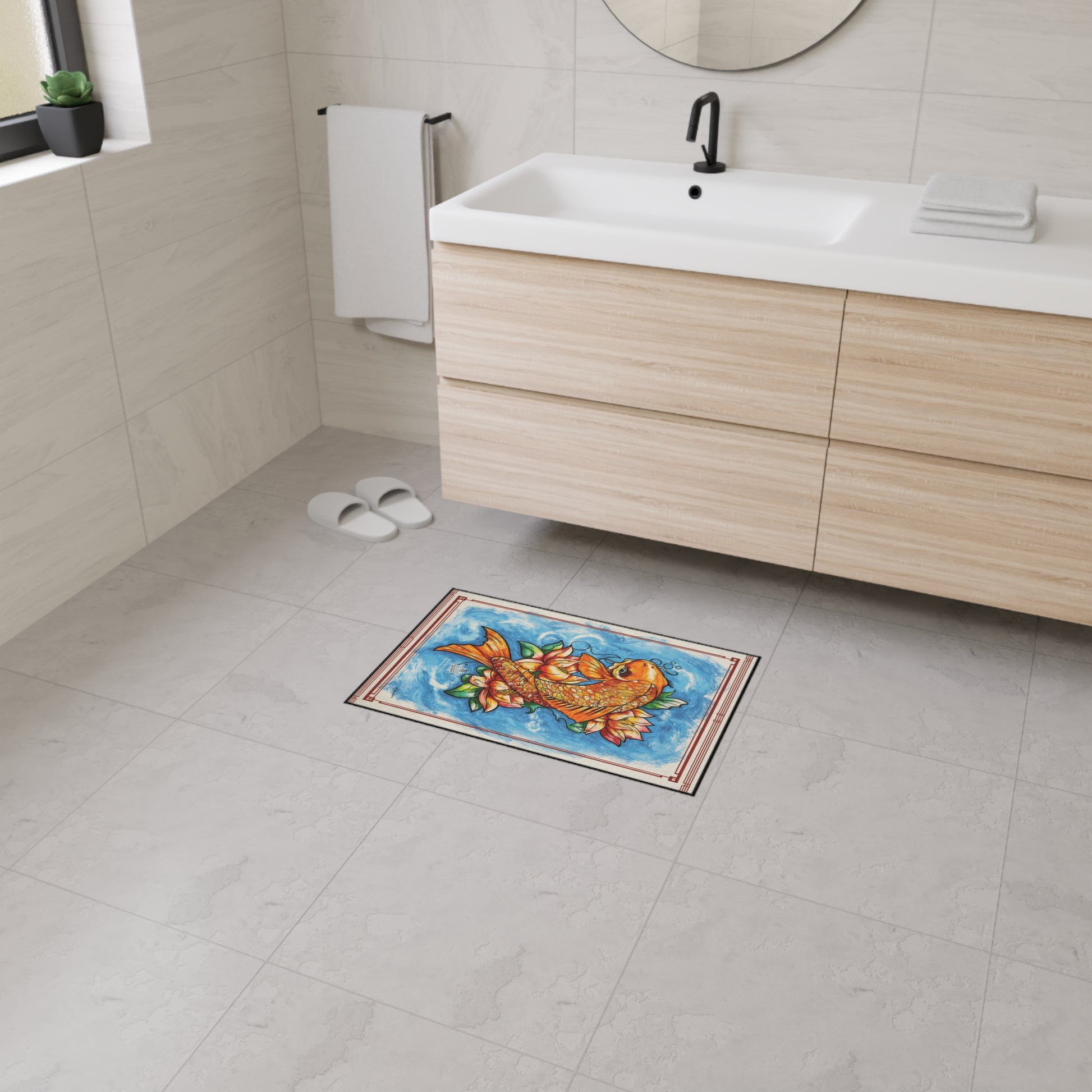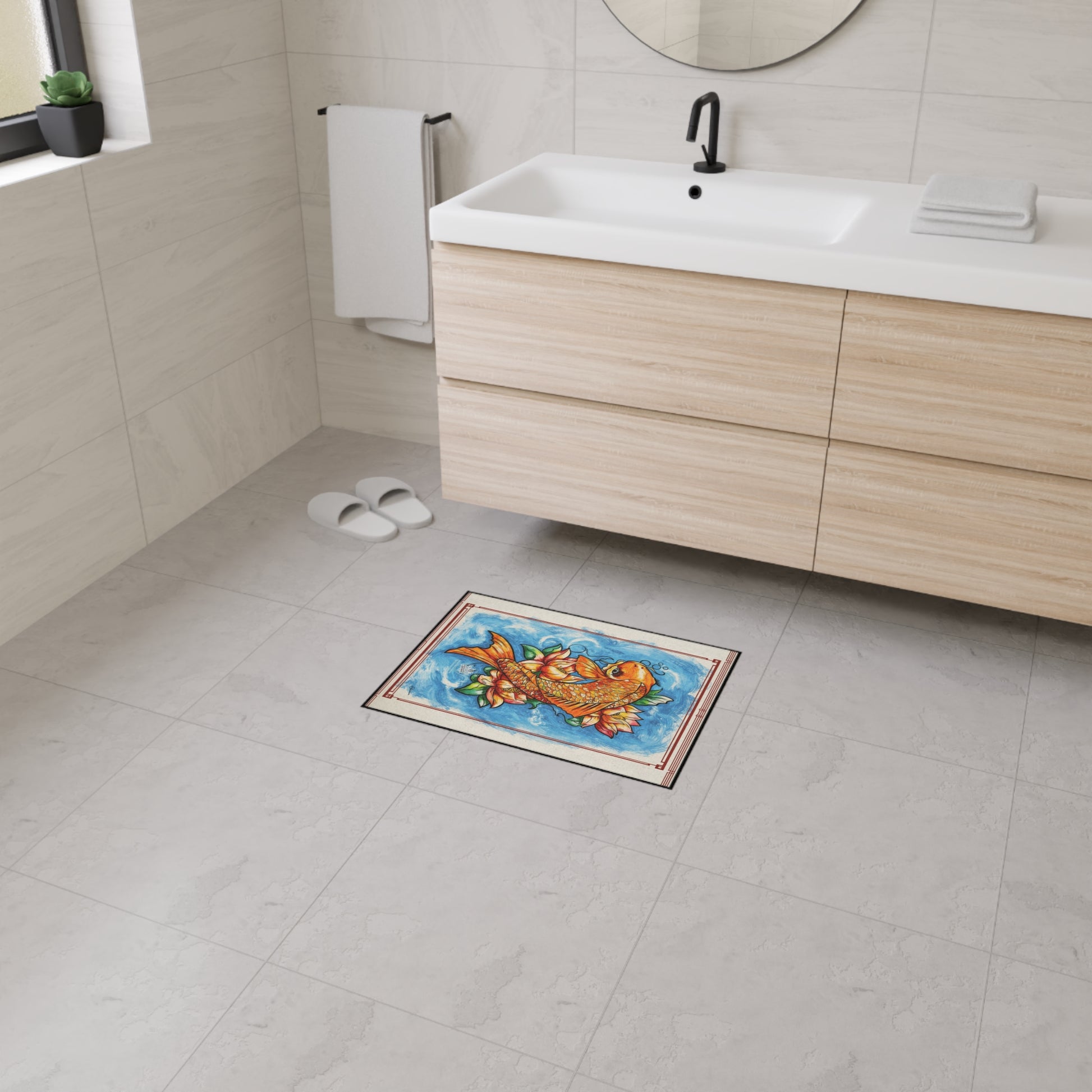 Koi Fish Heavy Duty Floor Mat — Vibrant Orange Koi with Lotus Design