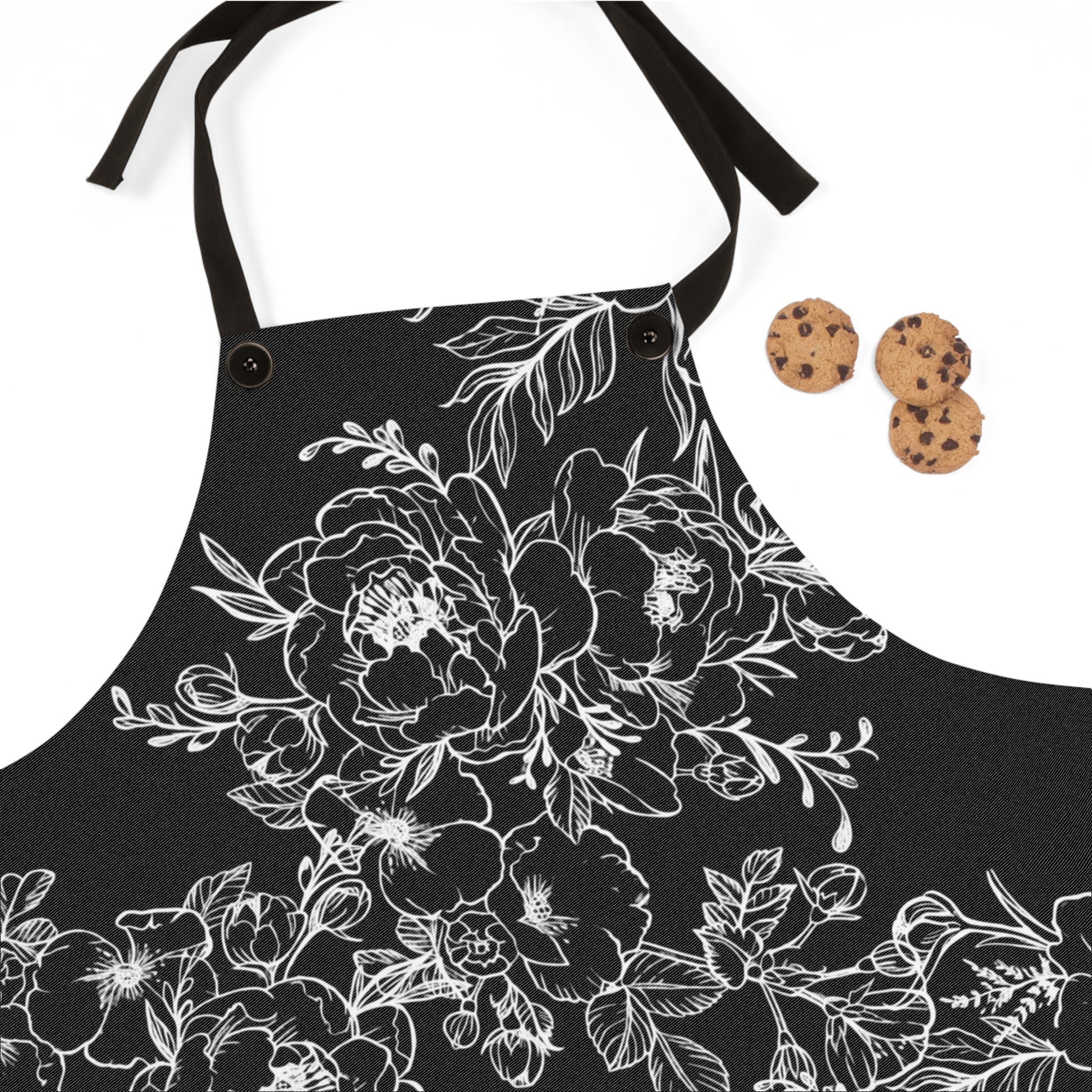 Peonies Tattoo Artwork - Black Apron - White Peonies