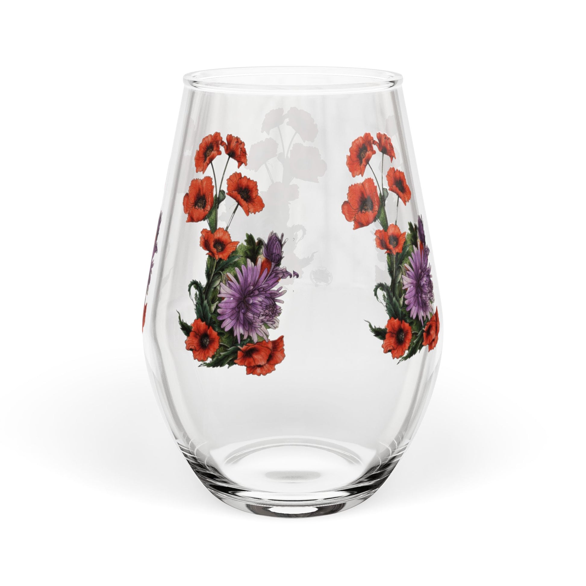Red Poppy Purple Aster - Stemless Wine Glass, 11.75oz