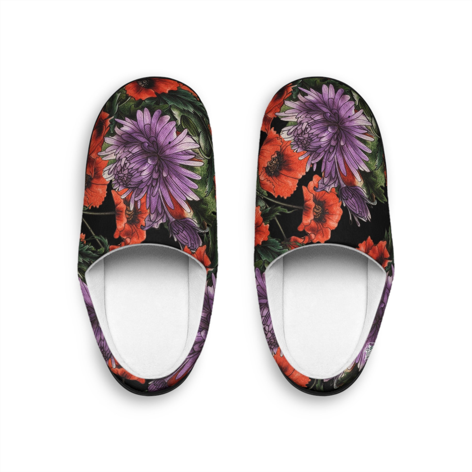 Red Poppy Purple Aster - Women's Indoor Slippers