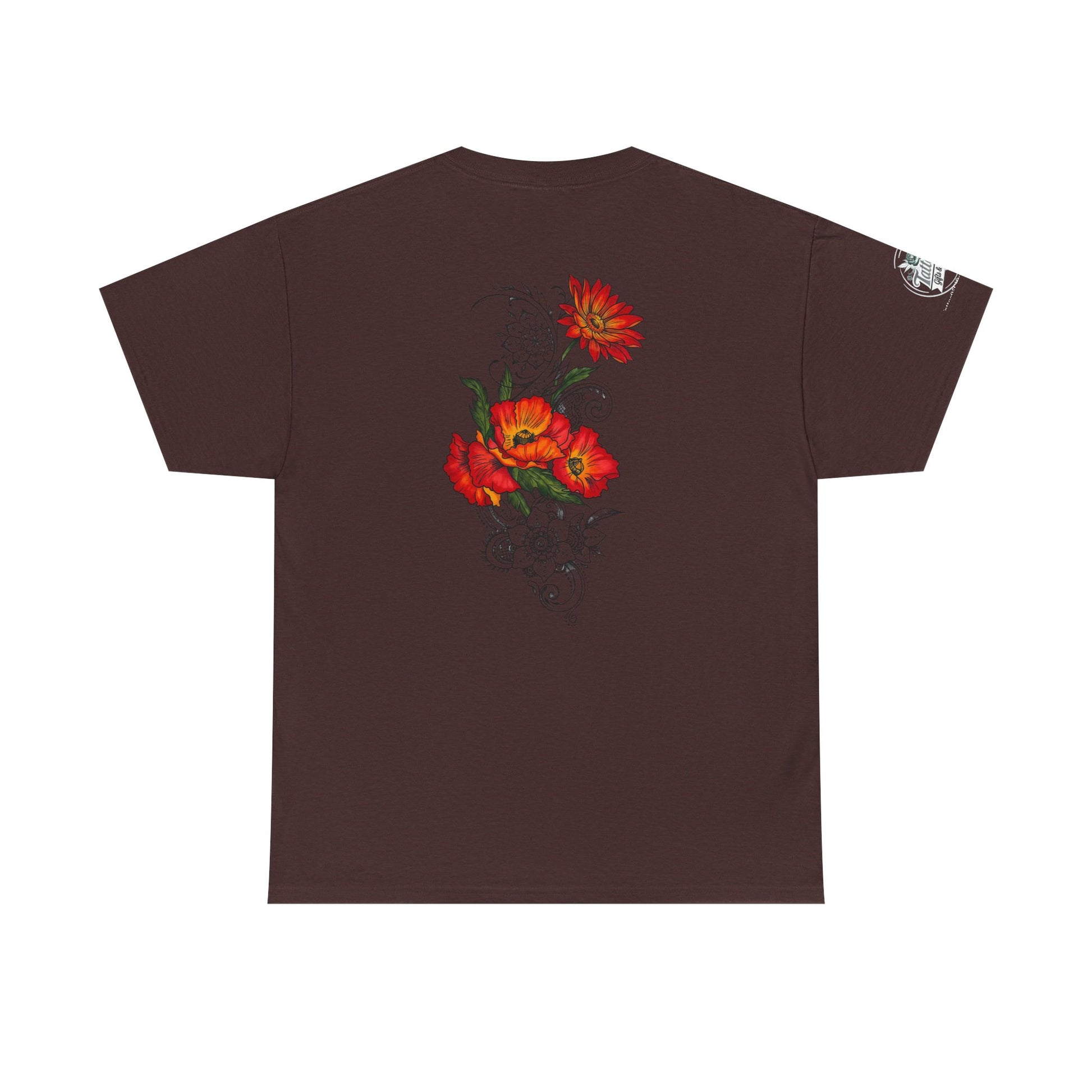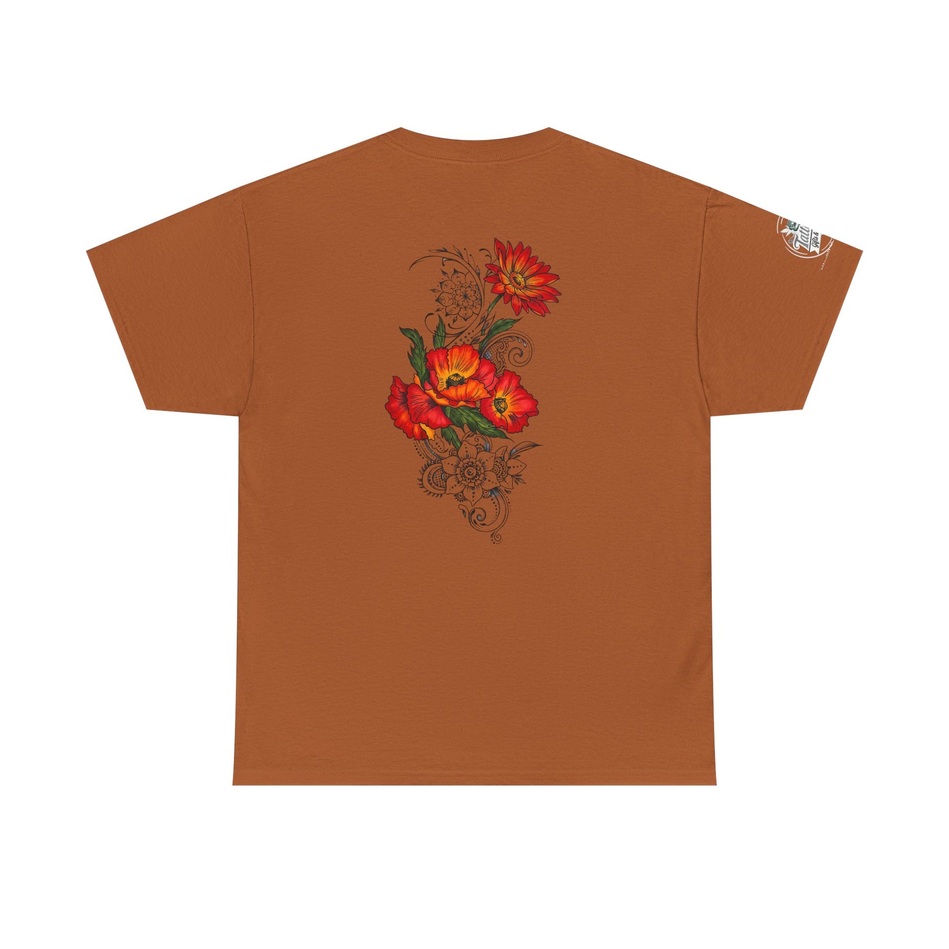 This tee carries the Sacred Beauty tattoo artwork from our Melanin Muse Collection like a quiet declaration. Soft, tightly knit cotton holds every shade and edge of the design with clarity, so the art reads bold and true whether you’re out at a market or gathered with friends. The seam-free body and taped shoulders keep the silhouette clean and flat, so the print stays centered and the shirt wears smoothly. Wear it layered under a jacket or on its own; it settles into your rotation and ages with the memory of days lived well — museum runs, late-night conversations, family celebrations. For people who celebrate melanin-rich skin and art that speaks to identity, this shirt feels familiar: comfortable, resilient, and thoughtfully made.