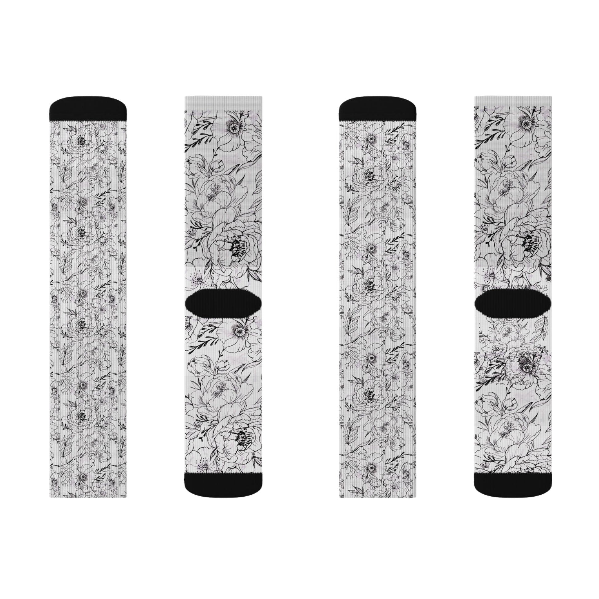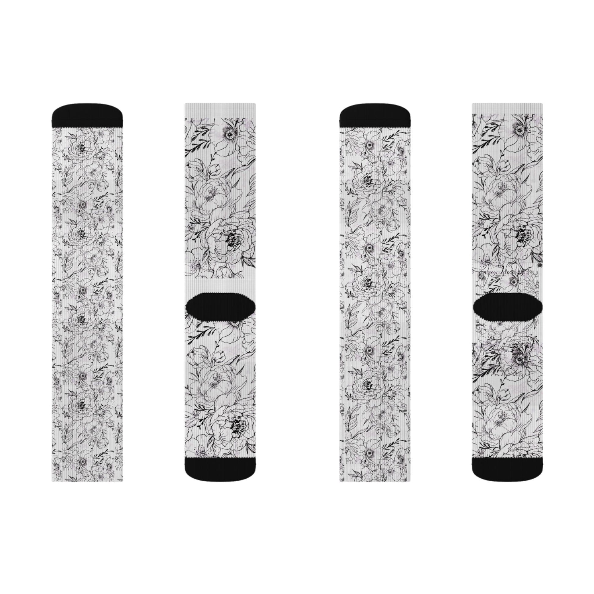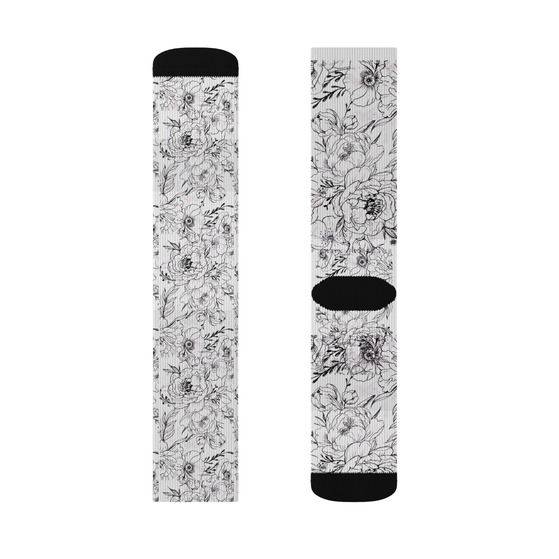 Elevate your everyday with socks that deserve a second look. Featuring striking peony tattoo artwork, these socks blend artistic flair with practical comfort—the perfect way to inject personality into any outfit. Whether you're navigating the boardroom or stepping out for the weekend, the 95% polyester and 5% spandex construction keeps your feet cushioned and supported. The ribbed tube design ensures they stay in place all day, while the cushioned bottoms provide the comfort your feet crave. Available in three sizes with a unisex regular fit, these aren't just socks—they're a statement piece you'll actually want to wear.